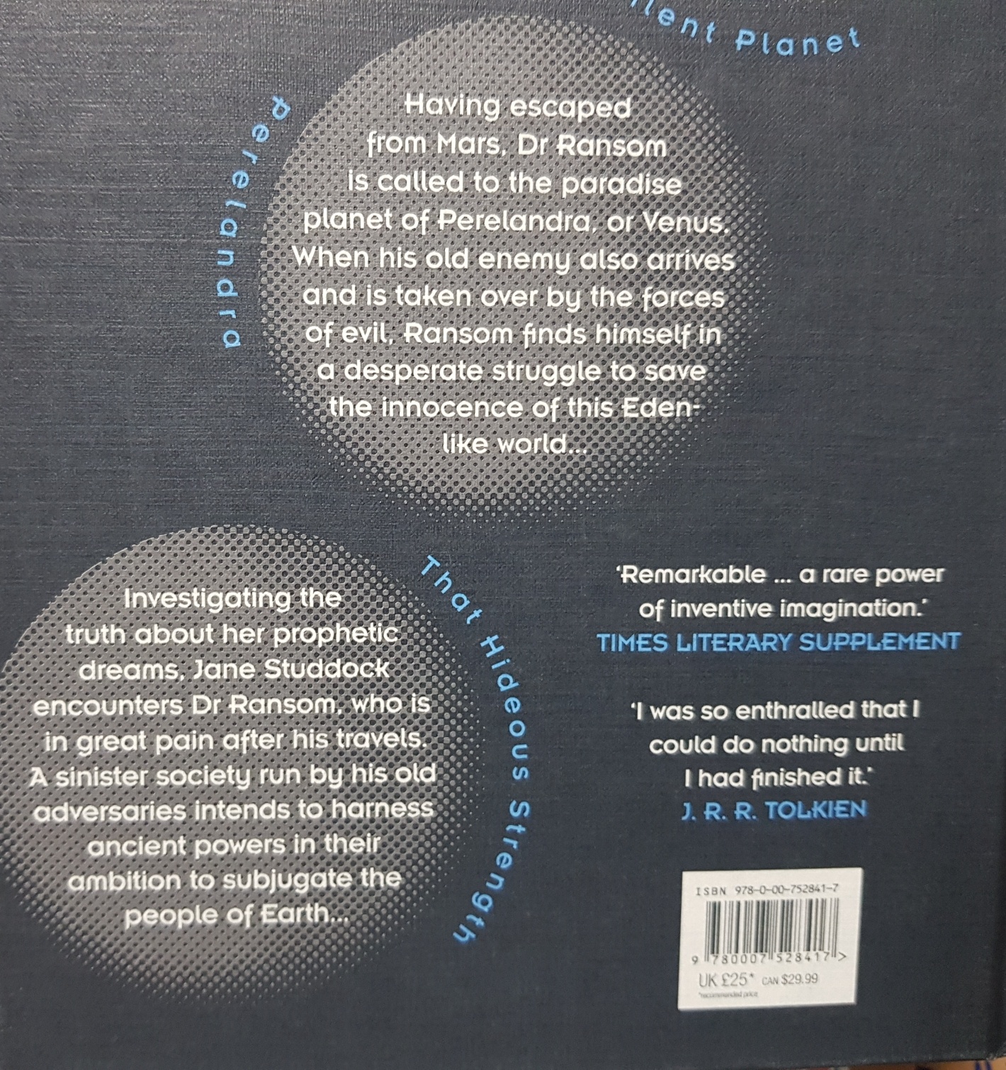 C. S . 루이스가 지은 우주 3부작 원서입니다. < 침묵의 행성 밖에서 >, < 페렐란드라 >, < 그 가공할 힘 > 이 한 권으로 만들어졌습니다. 인터넷 서점에서 주문이 가능합니다.
