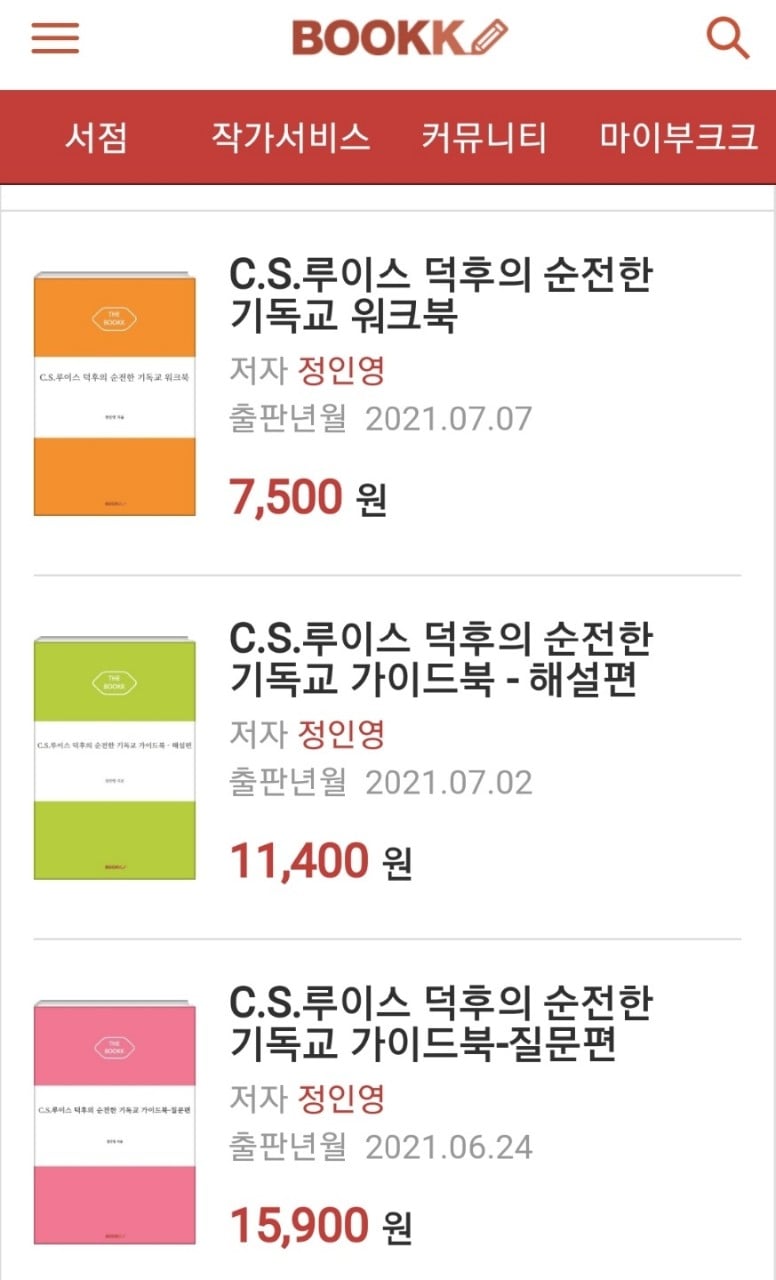 출간일은 2021년 7월 2일이다. 세 번째 저서는 < C.S.루이스 덕후의 순전한 기독교 워크북 > 이다.