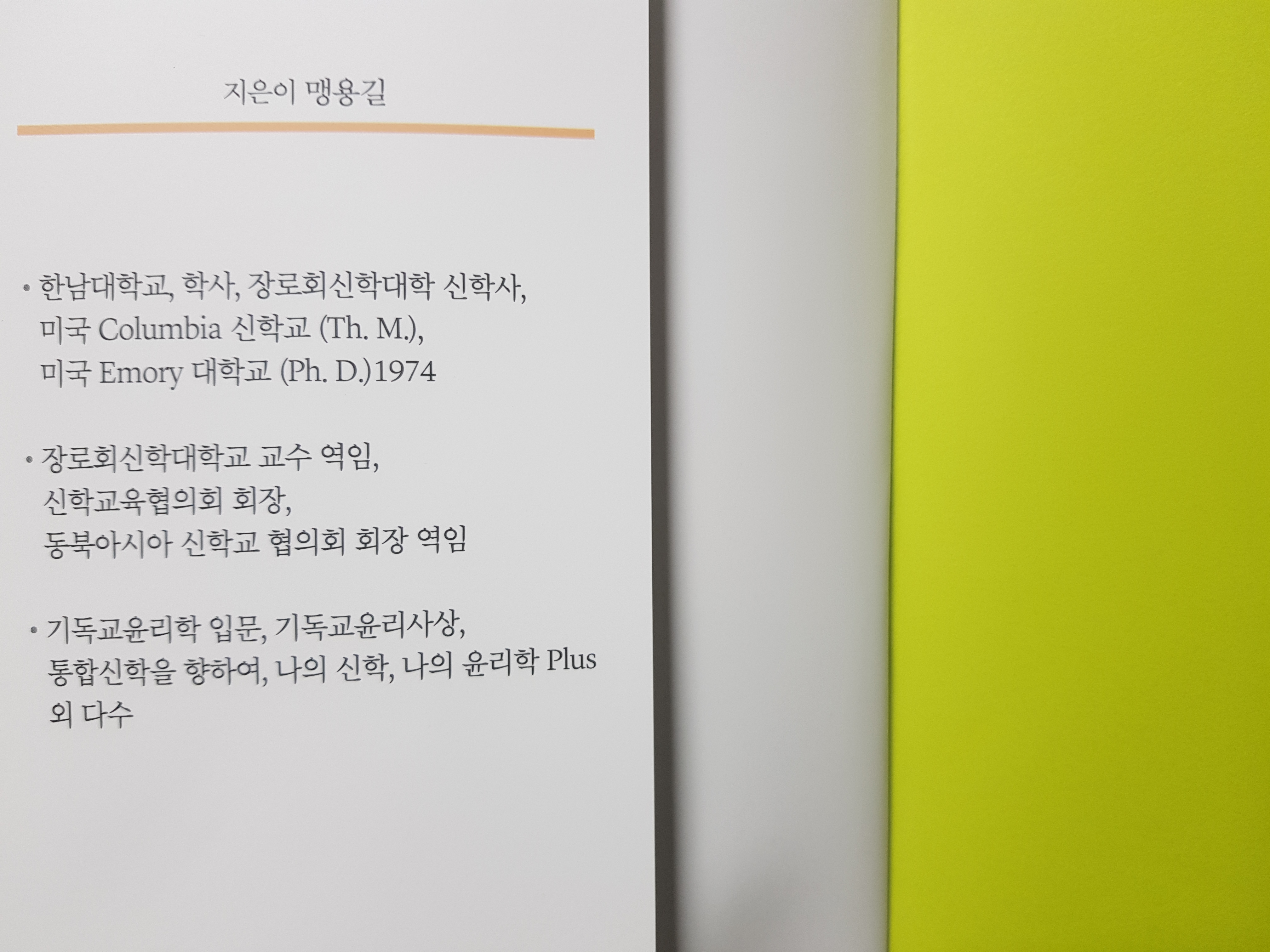 장로회 신학대학교에서 기독교 윤리학으로 교수-학습 활동을 한 맹용길의 자서전이 출간되었다.