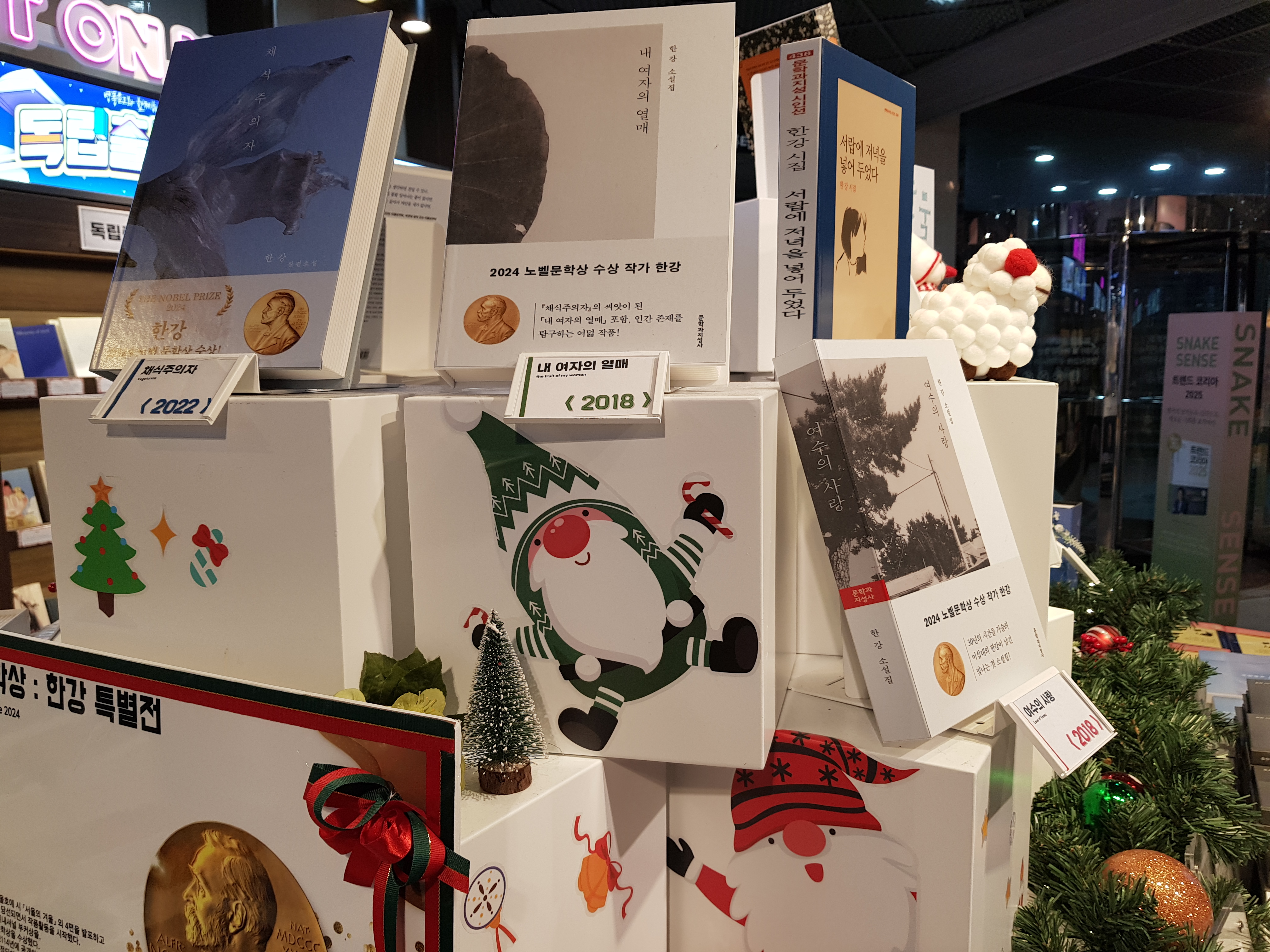 수상자 한강의 책 코너가 있습니다.