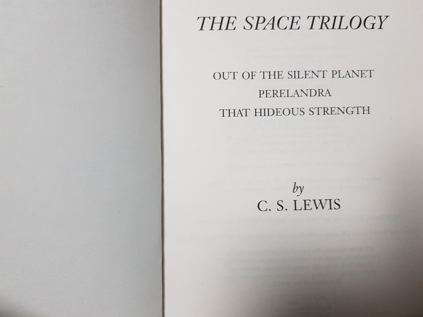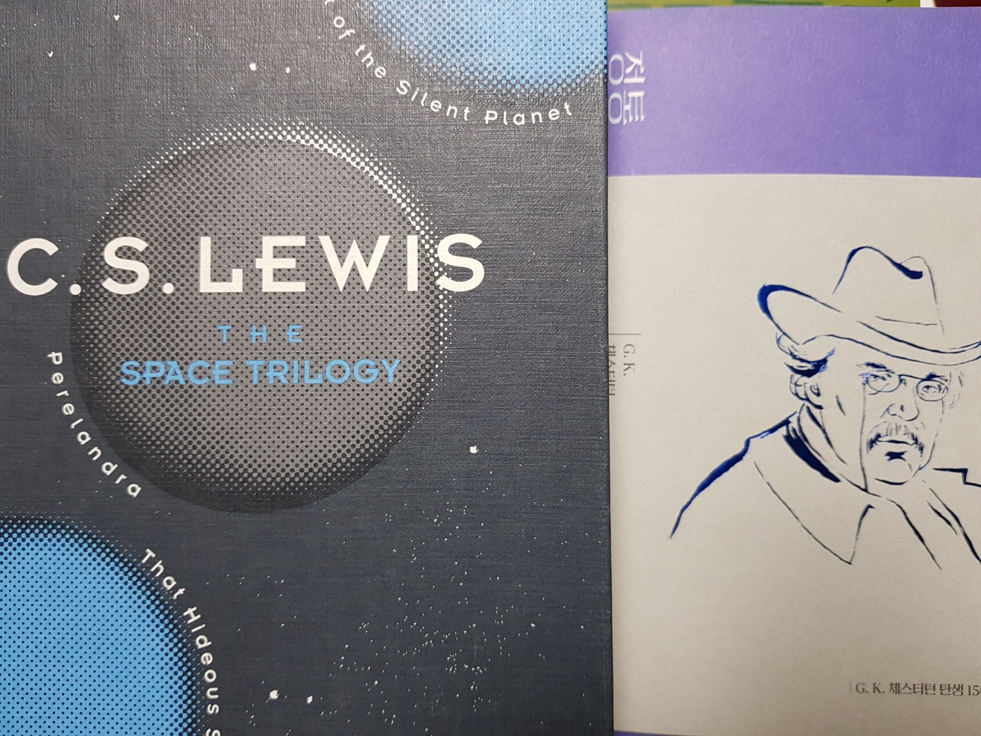 각 책의 원서 제목은 < Out of the silent planet >, < Perelandra >, < That hideous strength > 입니다.