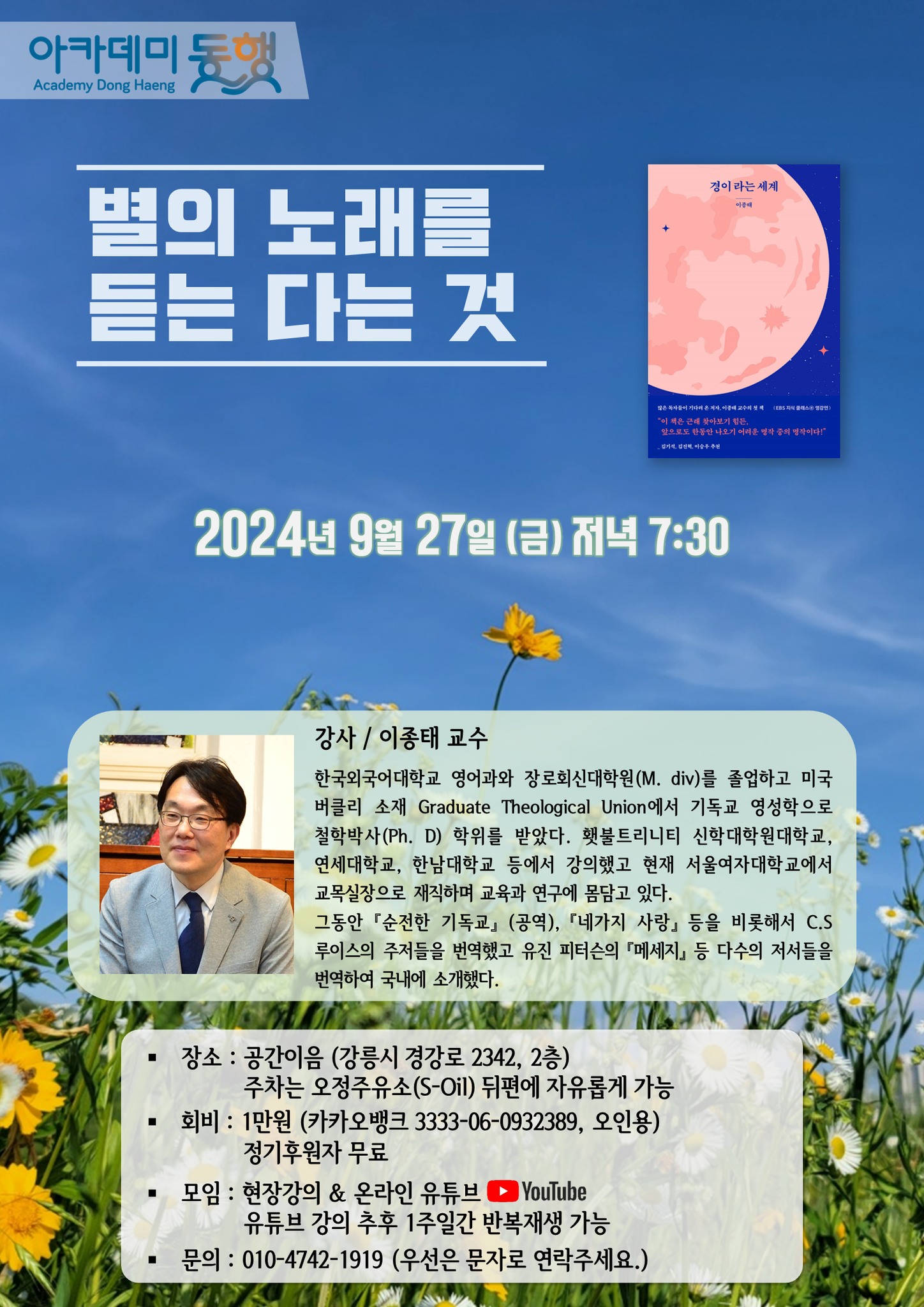 이종태 교수 강연 / 2024년 9월 27일(금) 저녁 7시 30분 / 장소: 공간이음(강릉시)